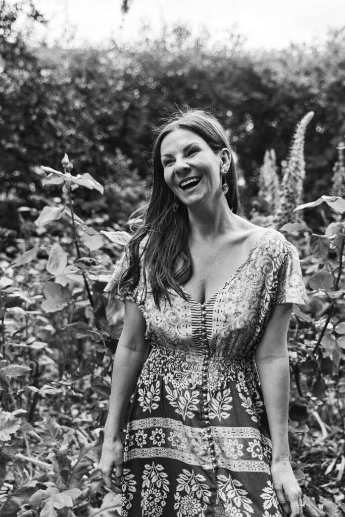 entrepreneur lying in the grass during a photo session to increase her visibility.
